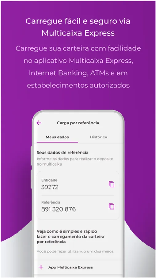 Carregue o seu dinheiro na Carteira ZUKESE Pay de forma instantânea, a partir do Multicaixa Express, nos ATMs e Estabelecimentos Autorizados