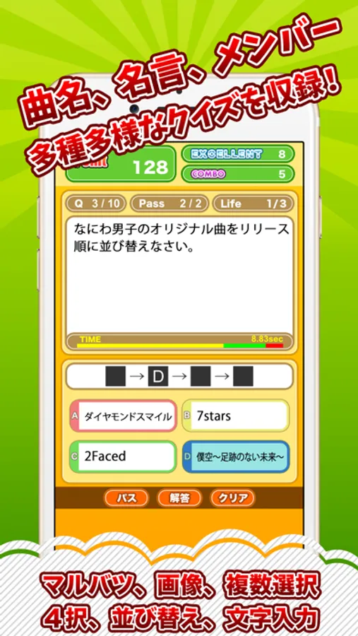 クイズを10問解くと推しメンにポイントが加算されます。(全問正解でポイント2倍!)