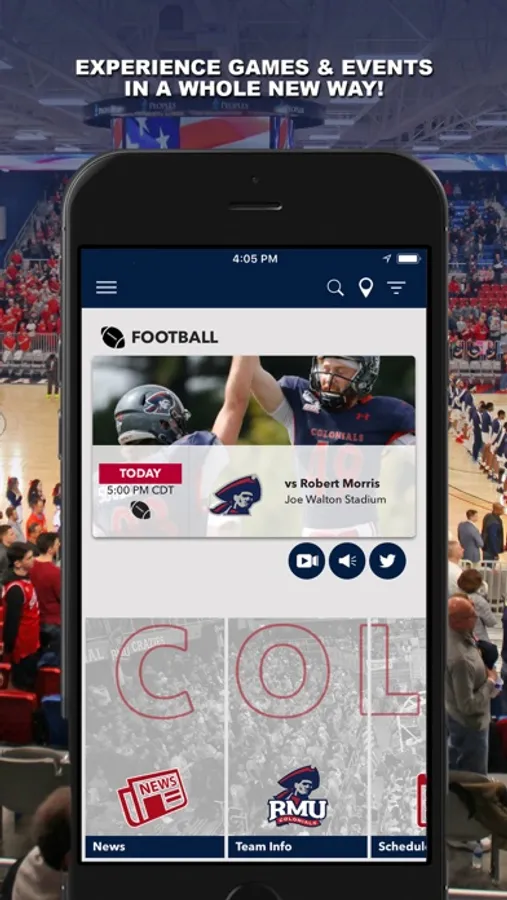 The RMU Athletics application is your home for RMU Athletics! Whether you’re on campus or on the go, this app is a must-have for ALL Colonials fans.