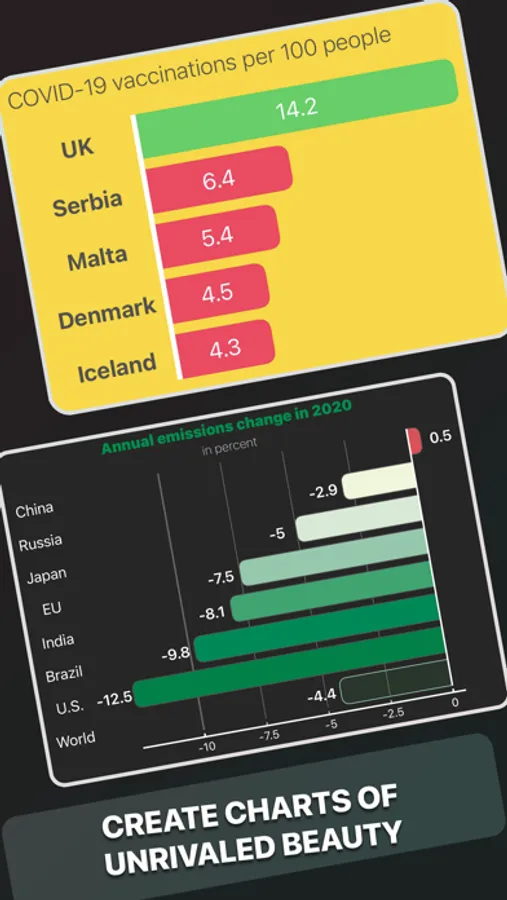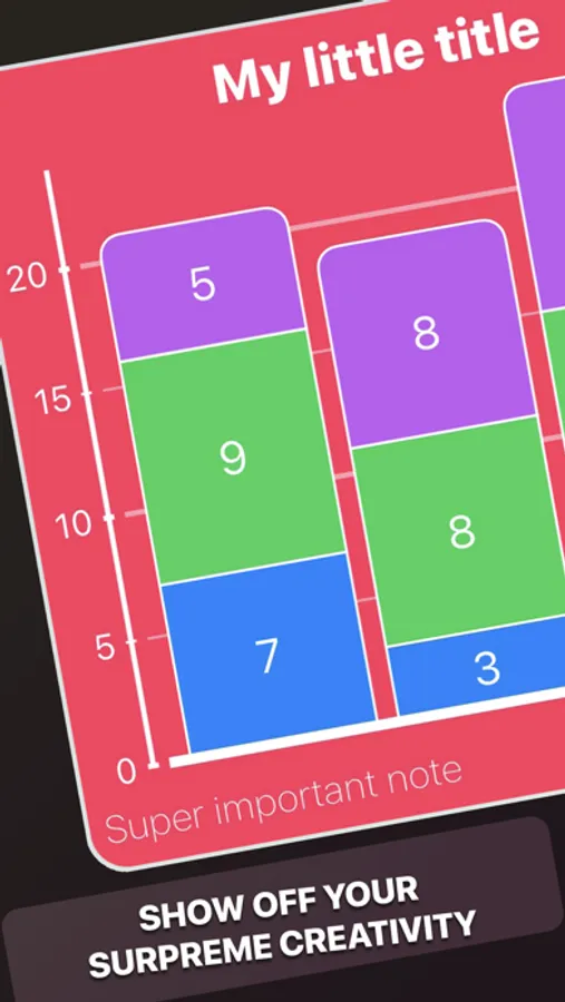 ◆ Build awesome charts (bar, stacked, grouped, pie, bubble, line, horizontally, vertically, ...) and modify the color, border, size of almost anything to your liking