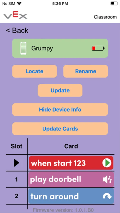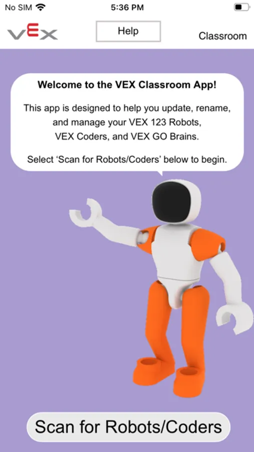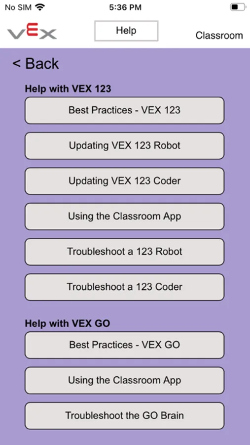 The VEX Classroom app allows users to manage their classrooms full of VEX GO robotics hardware. Users can use VEX Classroom to: