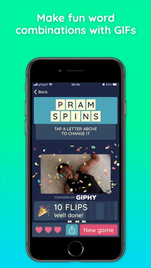 It's a new take on word ladder games where you can make some funny word combinations! Get related animated GIFs with every word you submit - a great way to remind you of your favourite TV show like Shitt's Creek or Breaking Bad, or a classic like Friends, The Simpsons or The Big Bang Theory! Or just get a great meme that you can share to Instagram, Snapchat or Twitter.