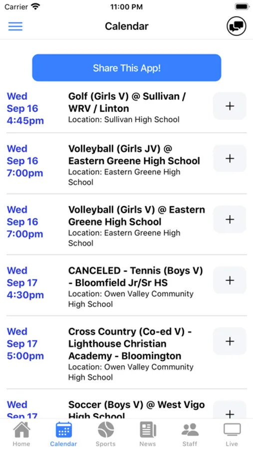 - Receive important late breaking push alerts about athletics events