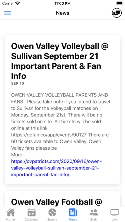 The Owen Valley Athletics app for iPhone, iPod, and iPad allows student, faculty, parents, and the community keep up-to-date with athletic communication. Owen Valley High School is located in Spencer, Indiana.