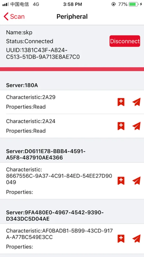 2. It can connect the searched devices, and support the characteristics of subscription services and send instructions to the characteristics of services