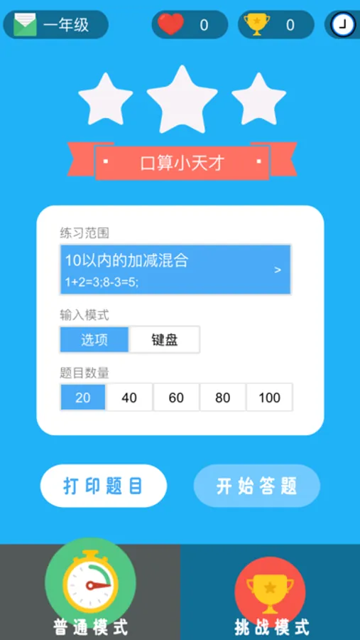 1、双模式训练,可以按照题目数量练习,也可以挑战自我极限。