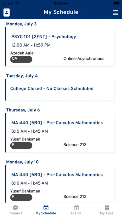 - View your course schedule