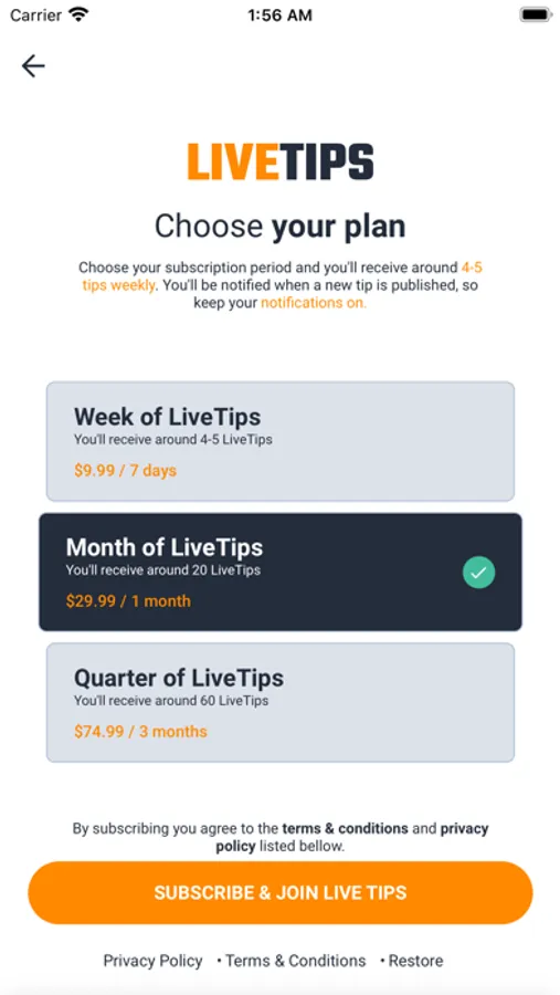Install the LiveTips app, check out the history and if you like what you see, subscribe to one of the 3 tiers: weekly, monthly or quarterly.