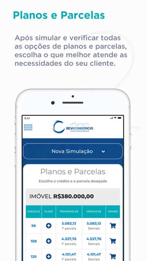O aplicativo possibilita efetuar simulações e vender cotas de consórcio com maior praticidade de uso em seu dia a dia.
