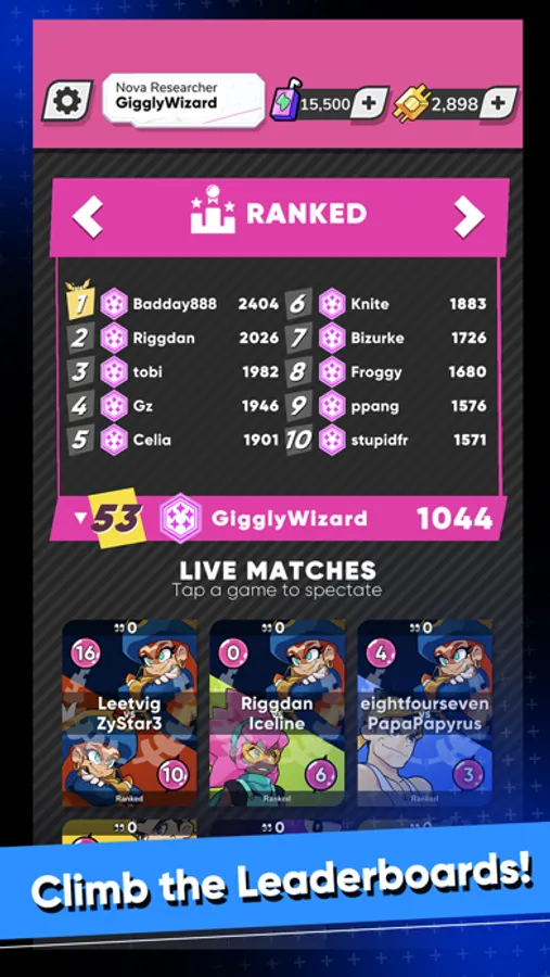 - RANKED - Vs players around the world. Level up on RESEARCH ROAD, collect NOVA JUICE, and climb the leaderboard!