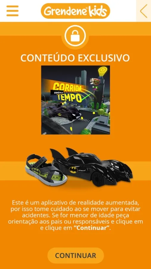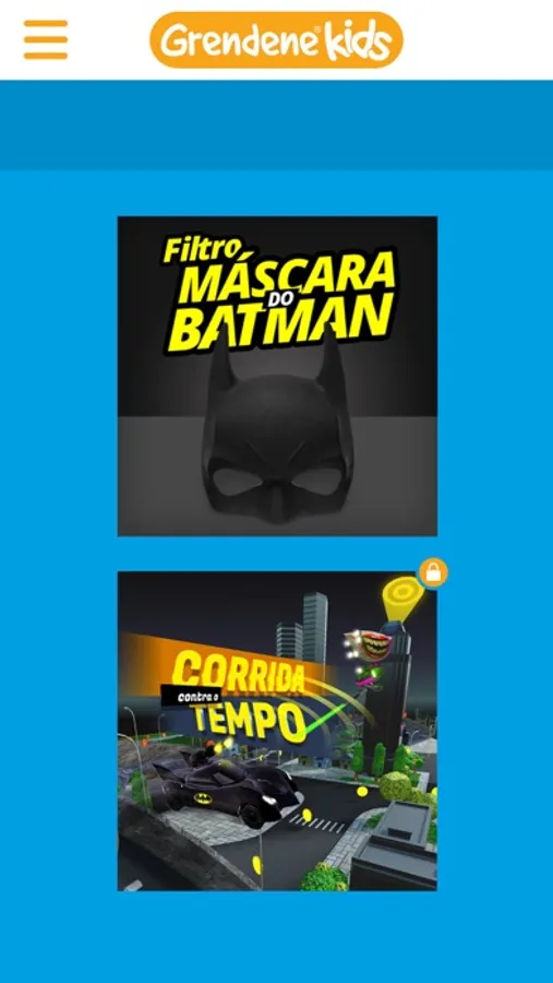 Com o aplicativo "GKids para Batman " você vai se divertir muito! Com filtros exclusivos em realidade aumentada, você pode utilizar a máscara do herói mais sensacional de todos: o Batman. E se você tem a Sandália do Batman, da Grendene, terá acesso exclusivo ao game "Corrida Contra o Tempo". Para jogar, você precisa escanear o brinde que acompanha o calçado e, então, a aventura começa. Neste jogo, você precisa derrotar seu inimigo com todos os equipamentos a sua disposição e, assim, avançar de fase, que cada vez fica mais difícil. Divirta-se!