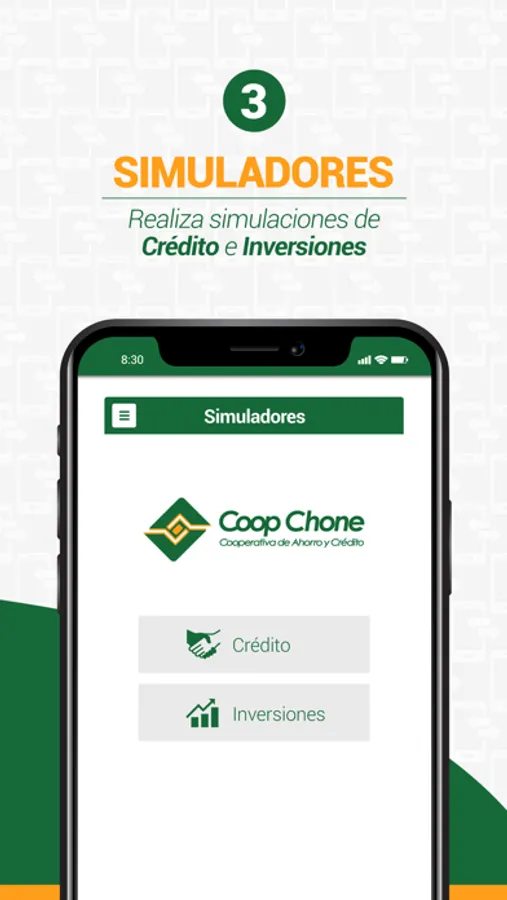 La Coop Móvil es una aplicación que le permite a los socios de la Cooperativa Chone acceder a sus cuentas y servicios de manera fácil y confiable.