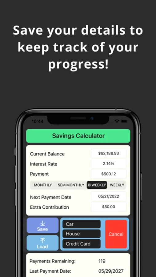 A simple application that will bring awareness to the cost of your loan and allow you to determine when you will be debt free. An added bonus feature that will allow you to add in an extra contribution to see how much time and money you will save!