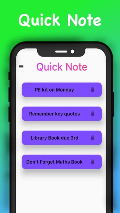 Study Log is the only app which replace the use of a Log Book in schools. Student can store their homework, timetable and urgent reminders in the app. This remove the idea of a physical of book which is made out of lots of paper and can not be environmentally friendly.