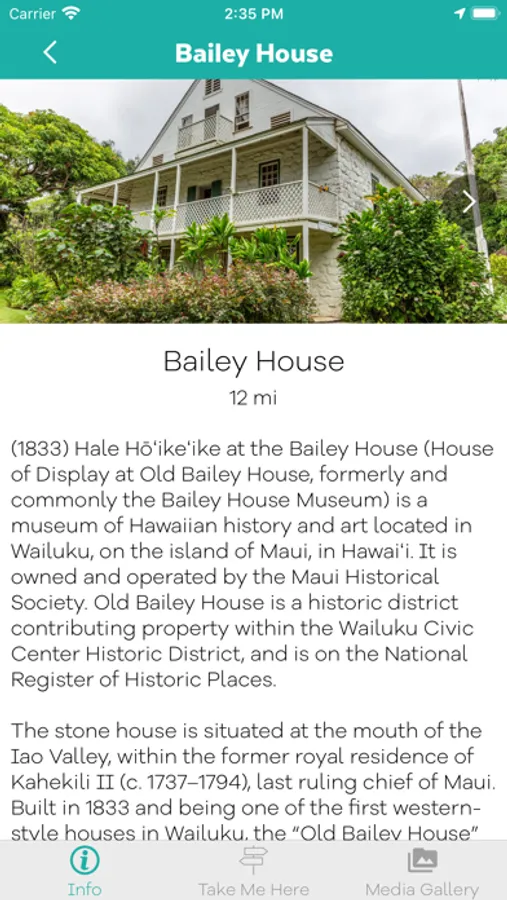 Ho'okama'āina celebrates the strong community and rich cultural heritage of the historic town of Wailuku, HI, also known as Pū'alikomohana, or Nā Wai 'Ehā which means the four waters (Waikapū, Wailuku, Wai'ehu, and Waihe'e). Developed in 2020 by County of Maui, Hale Hō'ike'ike at the Bailey House/ Maui Historical Society and Maui Visitors Bureau, the app serves as a free, accessible resource to gain information, education and inspiration from the enormously significant town of Wailuku. Within this tool, you will find three walking tours — cultural, historic and public art — with points of interest that offer details and stories compiled by a team of Wailuku champions, as well as a timeline and schedule of upcoming events for public participation. A work in progress, you are encouraged to contribute your Wailuku mana'o (knowledge, suggestions and more) to app@mauimuseum.org so that we may continually create a space to revive and remember this special place.