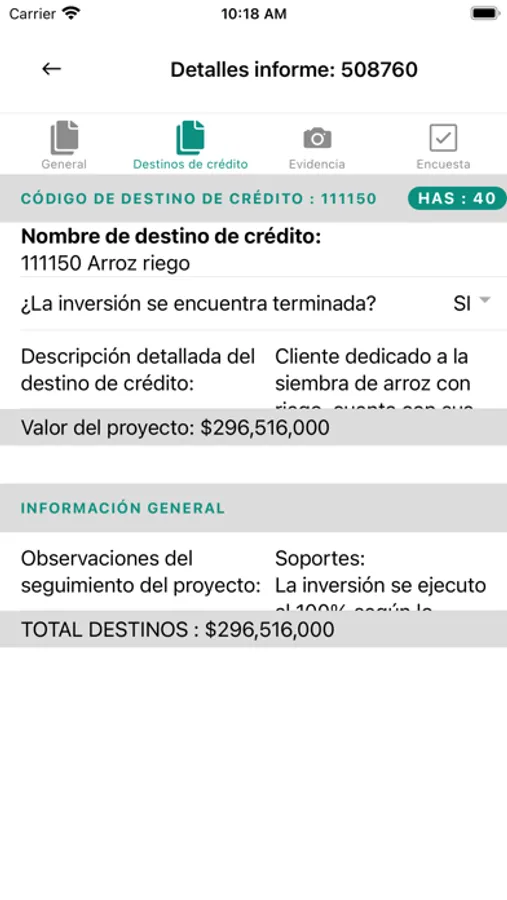 Esta aplicación permite consultar y registrar el Seguimiento a las inversiones de proyectos agropecuarios que ofrece el fondo para el financiamiento del sector Agropecuario-FINAGRO donde los visitadores registran el control de fotografías y ubicación en sitio para estas visitas.