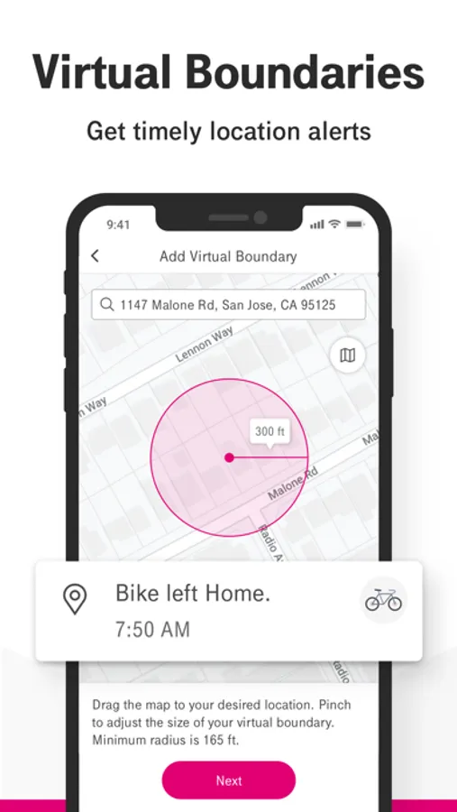 Virtual Boundaries: Set virtual geofenced boundaries to get notified when it leaves the selected area so you can quickly react