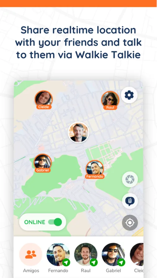 - RADAR: Share realtime location with your friends easily and talk to them via Walkie Talkie.