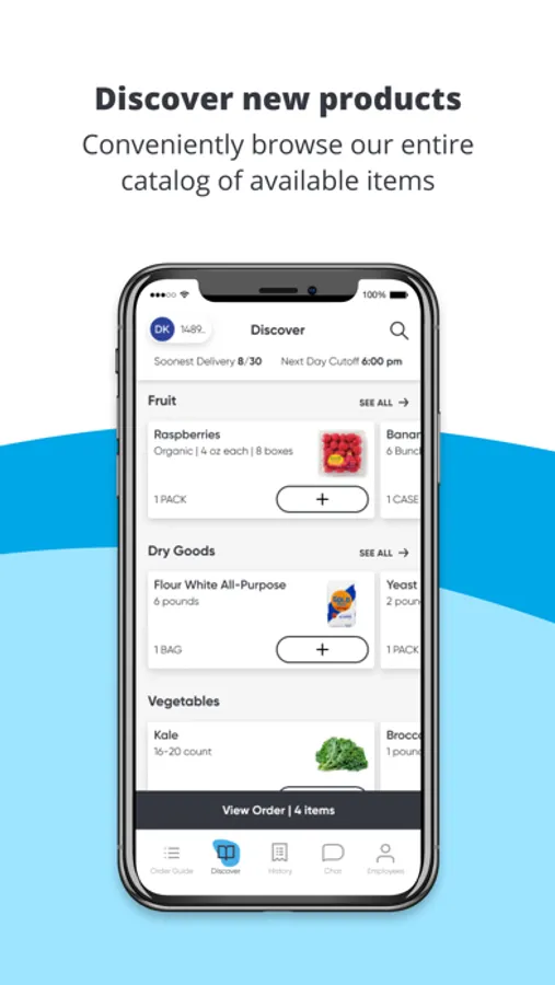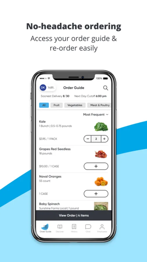 Our mobile app lets you search our complete product catalog, manage and update your ordering guide, and buy what you need at the moment you need it. It’s part of our commitment to giving you an ordering experience you’ll love.