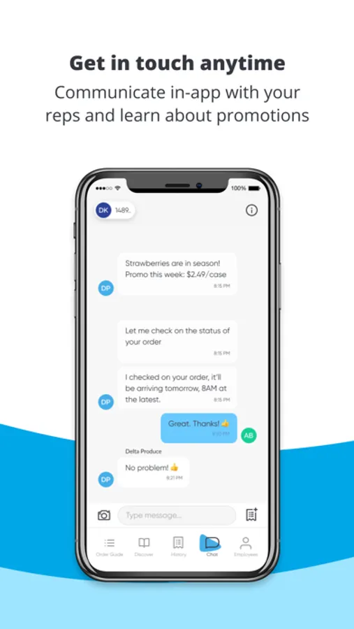 - Get in touch anytime: communicate directly with your Delta Produce rep in the app