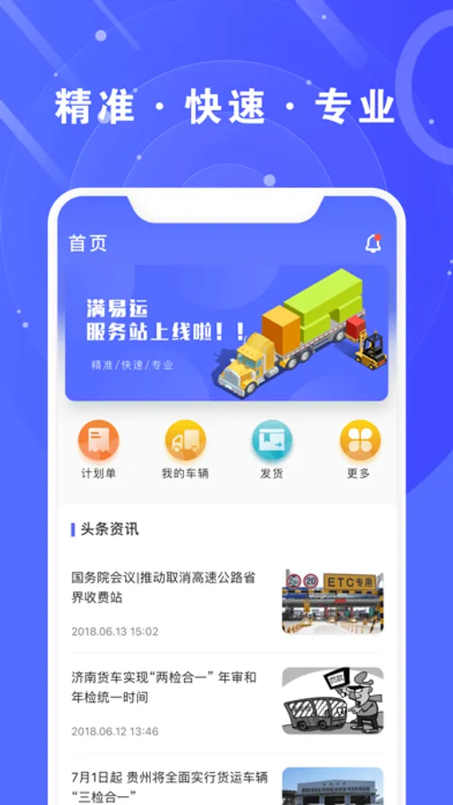 满易科技致力于为公路货物运输行业提供高效的运输服务和运输管理工具,拥有海量货源与司机运力,平台产品“满易运服务站”APP连接了货主和司机,为货找车,为车找货,实现物流行业的降本增效。