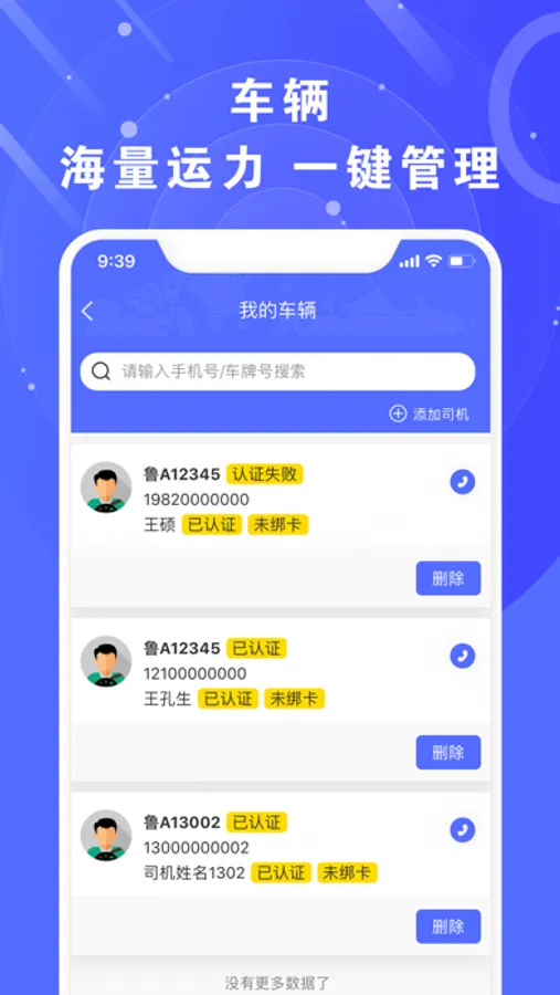 4、“我的车辆”——添加服务站运力,海量运力可供选择;