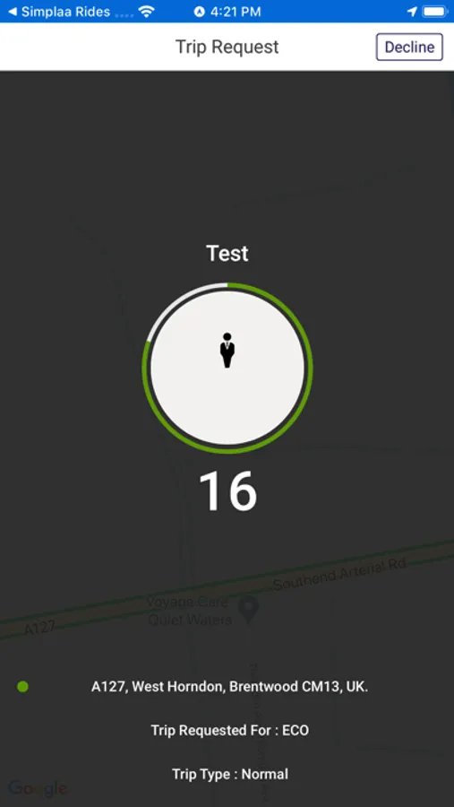 Automatically receives passenger's trip request with trip details.