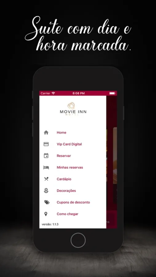 Baixe nosso App, faça seu cadastro e ganhe R$ 15,00 para utilizar na sua primeira reserva. Ir ao Movie Inn Motel nunca foi tão fácil. Você reserva a sua suíte antes de sair de casa, do trabalho ou da balada, acumula descontos para utilizar na sua próxima estada e muito mais. O Movie Inn Motel está localizado em Ribeirão Preto.