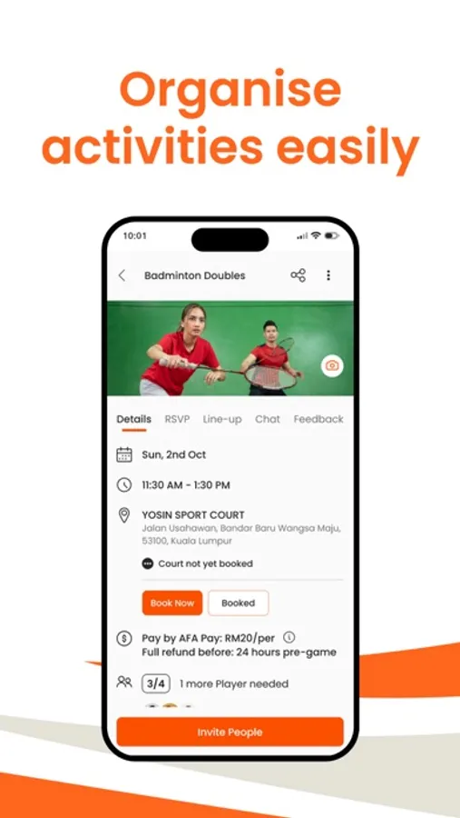 1. Easily create activities, invite friends, manage RSVPs, team grouping, and split payments for venue fees. Say goodbye to RSVP stress!