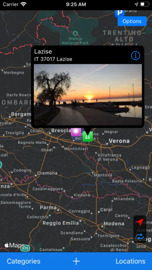 The Locations MAP app has numerous useful functions so that operation is simple and fun at the same time. One of the most important functions is the quick and easy creation of a new location. In addition to searching for an address, it is also possible to enter GPS data directly. If you want to create a location from which you already have a picture in your photos, the coordinates are taken directly from the picture (if available). You can also tap directly on the map (long-touch) to select a new location. If you want to capture a location on the spot, simply use the camera function to create a new one.