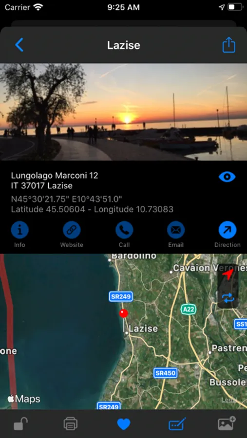 You can equip each individual location with additional information (website, email, info text, telephone and photo) and assign the location to its own category. You can also mark selected locations as "favorites" or as "already visited". You can find new locations, sorted by date, in the "Recently added" list.