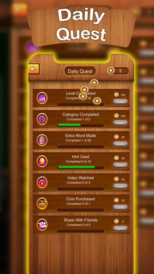 * Find as many words as possible to unlock levels and earn bonus coins.