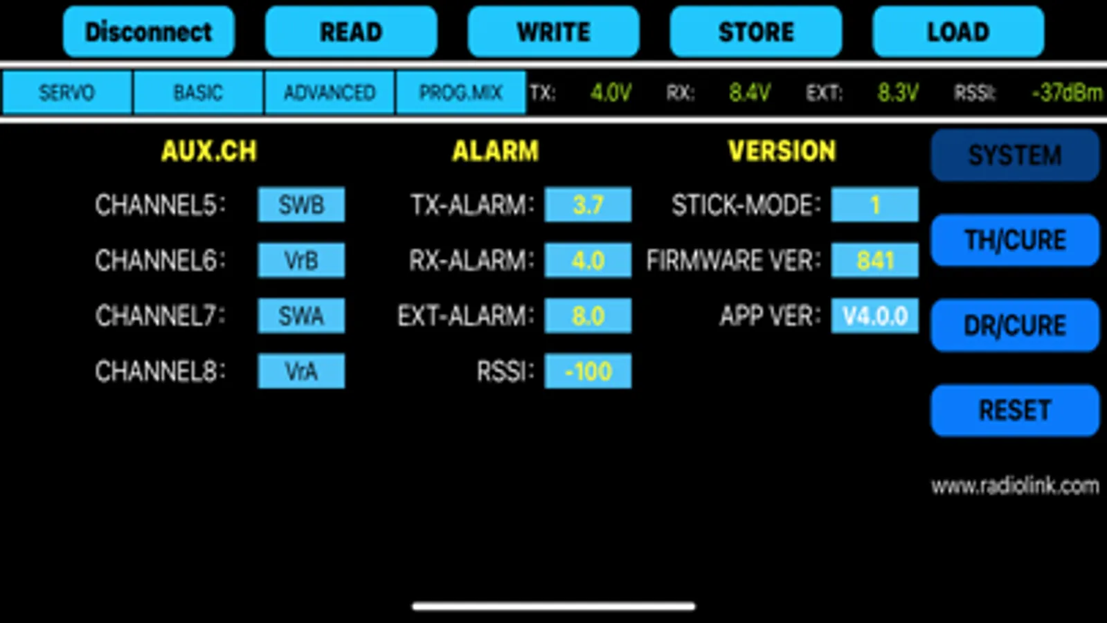 Radiolink connects with the built-in Bluetooth module of the T8S remote control produced by Radiolink to read and write the modified data.