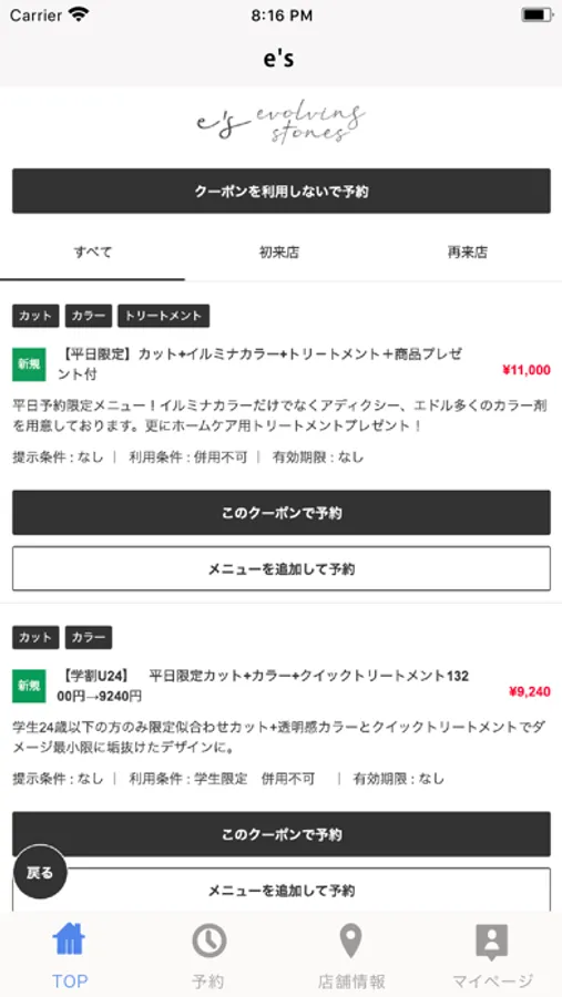 お得なクーポンが配信されます。ネット予約時にクーポン利用での予約も可能なので来店時もスムーズに施術頂けます。