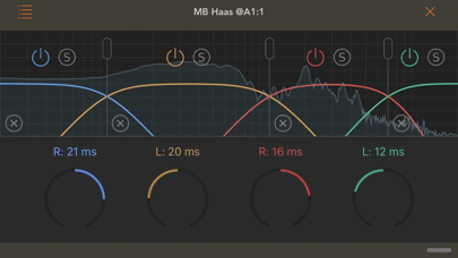 Haas effect is a micro-delay applied to either the left or right channel of audio (but not both). This simple effect creates a realistic and natural-sounding increase in the width of the stereo field that still sounds good when mixed back to mono. It is the most simple and effective way to take a mono input and make it sound like stereo. But Haas effect has some problems. First, it can create phase cancellation problems in the bass frequencies, causing them to loose volume. Second, it can sound a bit artificial at high frequencies. This multi-band Haas effect plugin is a simple way to get the stereo width you need in the midrange frequencies without loosing the impact of the bass or making the treble sound phasey. You select any number from one to four bands, each with its own separate Haas delay setting and adjustable crossover frequencies. This makes mono audio sound wide and spacious while preserving the original tone and spectrum transparently.