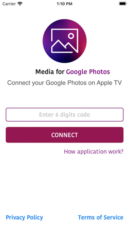 - Now open 'Media for Google Photos' iOS Mobile App and enter 6 digits code there to connect.