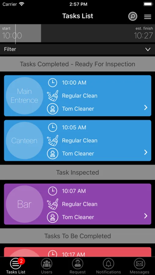 Allows to keep control on progress of users on scheduled tasks on the day and review historical data (archive)