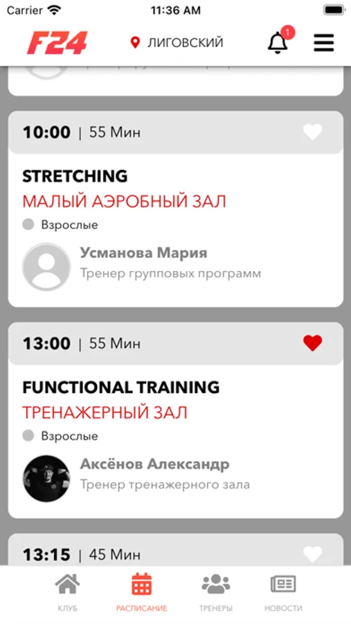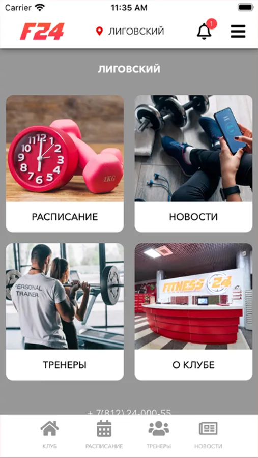 Приложение сети круглосуточных спортивных клубов FITNESS 24 (Санкт-Петербург). Предоставление доступа к расписанию занятий, новостям клубов.