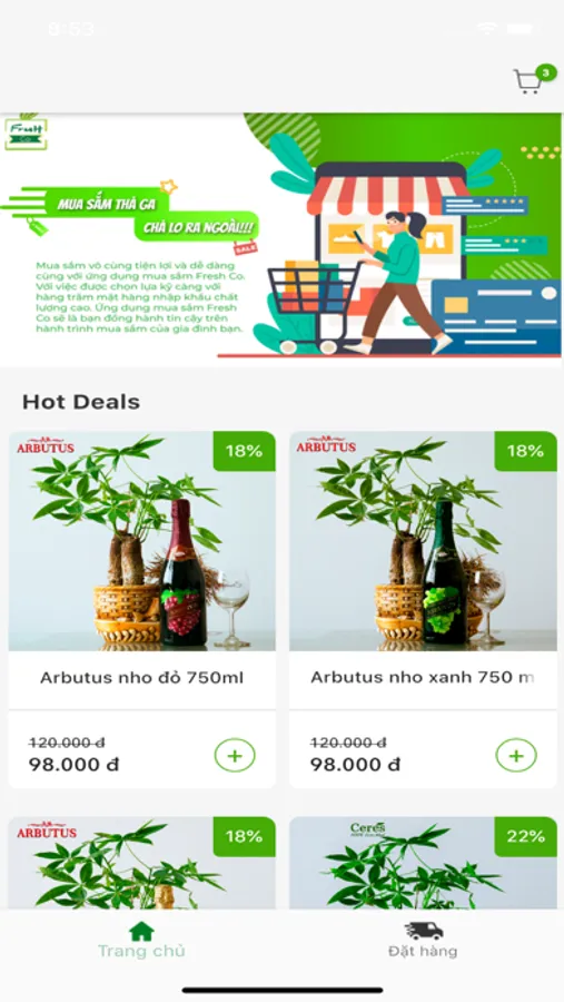 Chào mừng bạn đến với FRESH CO - Ứng dung mua sắm shopping tiện lợi với MỨC GIÁ THẤP NHẤT, nhiều ƯU ĐÃI HẤP DẪN NHẤT, đảm bảo HÀNG CHÍNH HÃNG chất lượng cao & GIAO HÀNG SIÊU NHANH TẬN NHÀ. Ứng dụng Fresh Co sẽ đồng hành tin cậy cùng bạn và gia đình trên hành trình mua sắm.