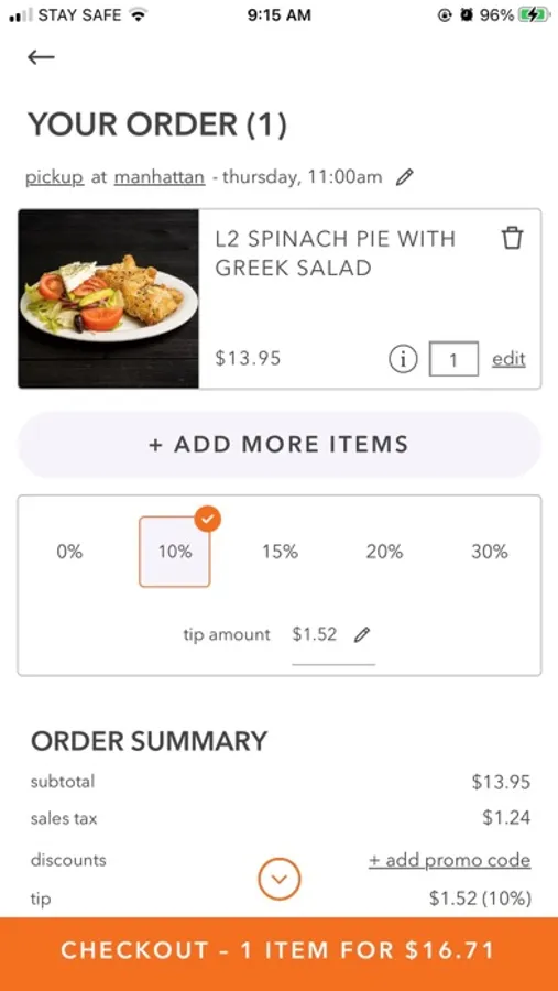 - Your recent meals are on the My Orders tab