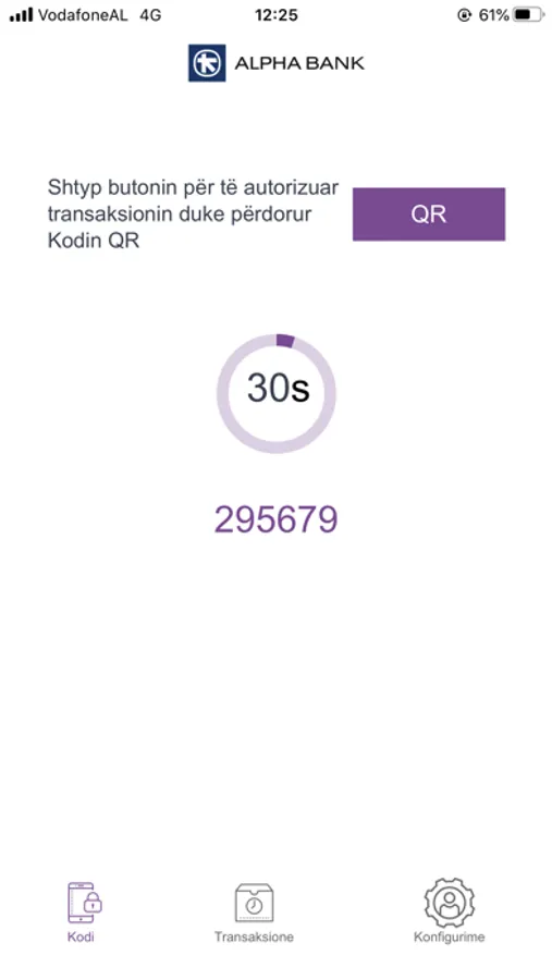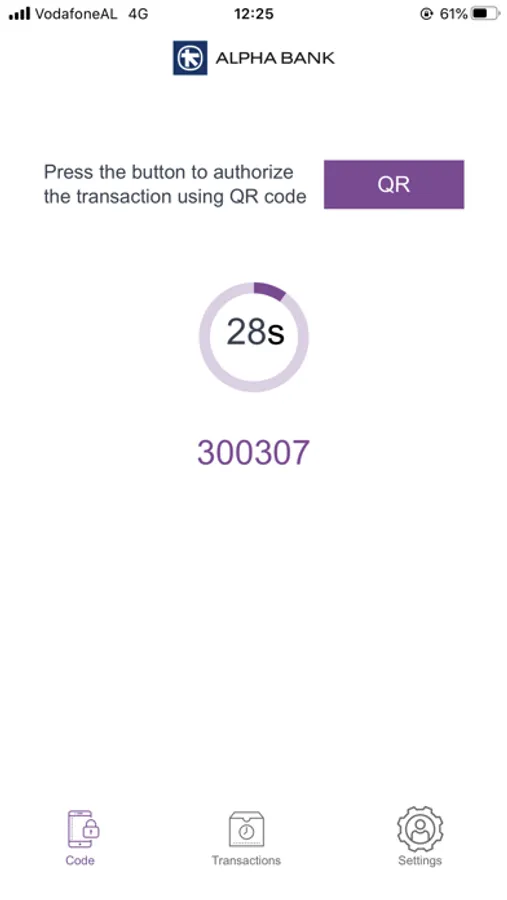 Alpha Safe Access Albania is a "software token" application that allows you to access Alpha e-Banking and safely authorize transactions initiated through it, by generating one time passcodes. If your smartphone is temporarily disconnected from the internet, you can scan the QR codes displayed on the payment initiation screen of Alpha e-Banking.