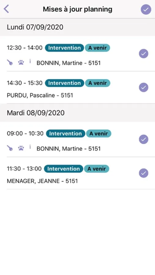 Domiphone permet la remontée des plannings sur l'application Mobile. Les intervenants peuvent ainsi visualiser leurs missions sur leur smartphone en temps réel à la journée, à la semaine ou au mois. En cas de modification du planning, une alerte est envoyée via l'application.