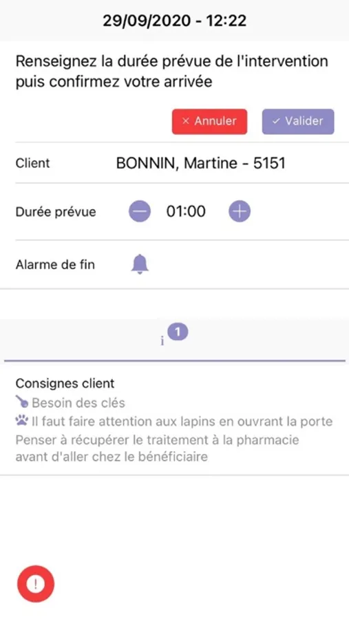 La saisie des début et fin d'interventions garantit l'effectivité de la prestation grâce à deux procédés :