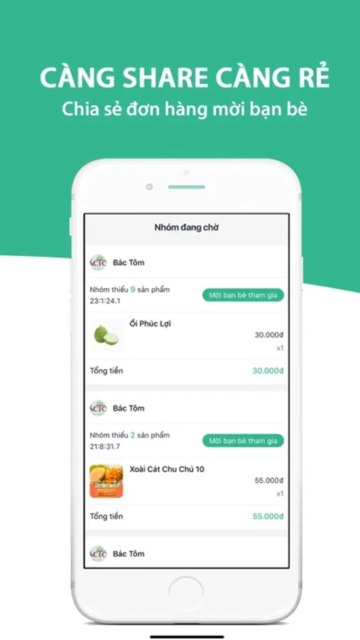 Khi đặt hàng tại app PANAMA, bạn sẽ có cơ hội được chia sẻ đơn hàng để bạn bè cùng mua. Với mỗi đơn hàng đáp ứng đủ số lượng yêu cầu, bạn sẽ được mua hàng với mức giá tốt nhất.