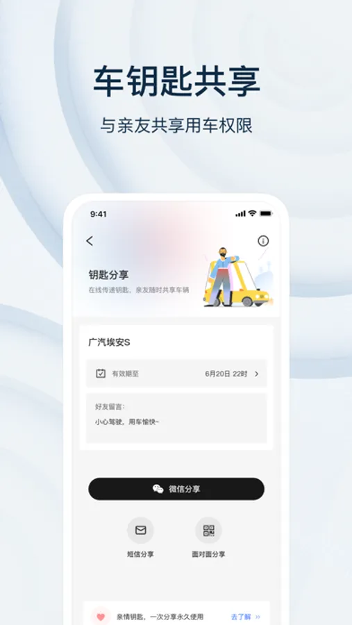 同时还可以生成多把钥匙分享给亲友,共享用车权限。