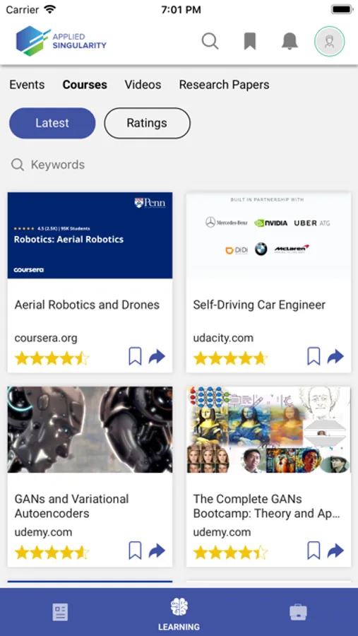 Connected hardware, intelligent software, and enhanced biological systems are merging together in ways few could imagine. Each of these areas are advancing so rapidly that it is hard to even keep track of the latest developments, build skills, get career opportunities, and access top business resources in these fields. The Applied Singularity platform facilitates this, in the hope that it will drive progress towards the singularity. Here's what this platform brings to you: