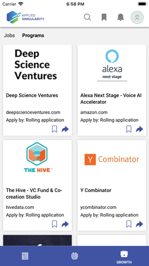 * GROWTH - Once you have these skills, you will likely want to utilize them to get better jobs working on better technologies playing better roles. Whatever it is that you are looking for, our Jobs section has you covered. We find the best career options for you and help you sift through the options quickly. For startups, the Programs section offers a range of hand-picked acceleration, training and corporate innovation programs. Hard tech startups are especially hard, but we can help you find the support you need.
