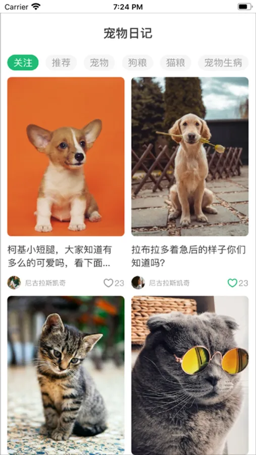此模块主要是以文字、图片、短视频的方式展示宠物方面的行业信息动态,记录宠物日常喂养,定期养护的时间和参考建议,并提供分类建社区群等功能。