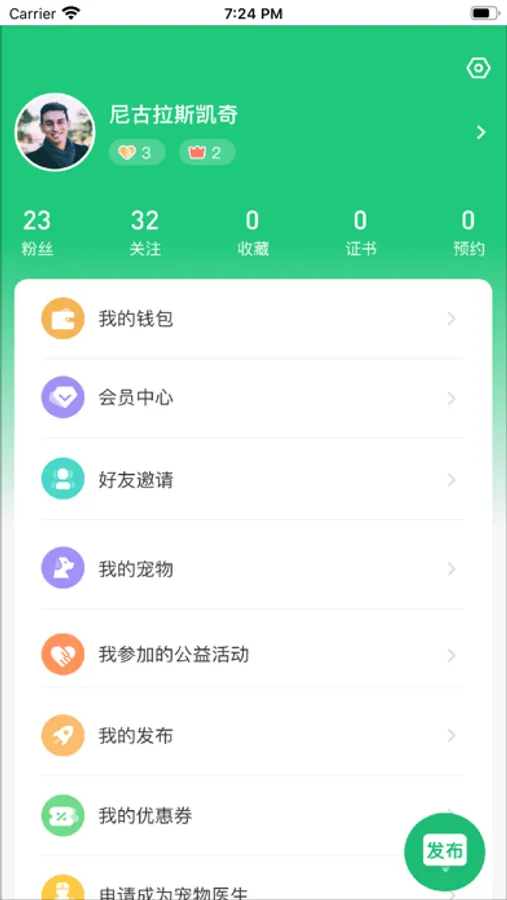 此模块会显示用户的所有信息,如咨询过的问诊、宠物的信息、发布的文章图片视频、剩余的宠物币、购买过的宠物食品玩具等。
