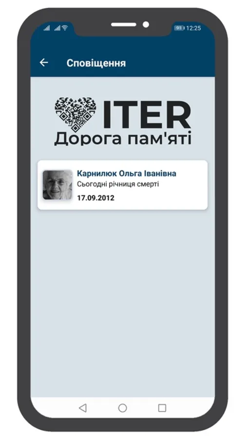 ITER – це платформа, покликана допомогти користувачам зберегти пам‘ять про рідних, котрі відійшли у вічність. За її допомогою легко пам’ятати та вшановувати дати народження та спочинку людини, зберегти памятні моменти її життя.